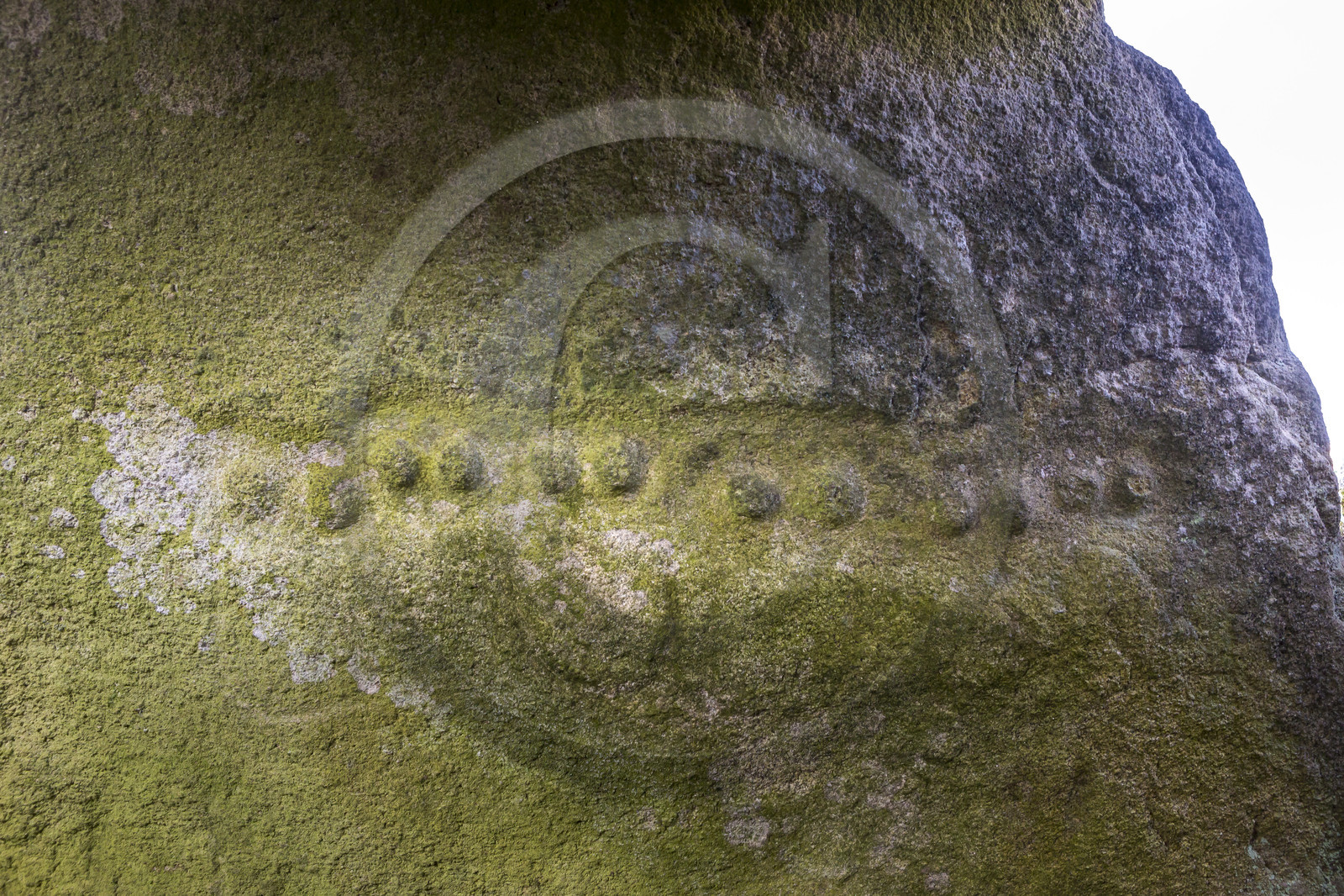 | Description | L'allée couverte de Kerguntuil à Trégastel. Il s'agit d'une sépulture, longue de neuf mètres, du Néolithique final (vers 2 500 ans av. J.-C.) à l'entrée latérale. Les 2e et 3e piliers nord sont sculptés : huit paires de bosses et un trait gravé bien en forme de « U ». Les archéologues pensent qu'il s'agit d'une représentation multiple de la grande déesse néolithique, la Déesse mère, nourricière des vivants et protectrice des morts, schématisée par des seins et son collier pectoral. |